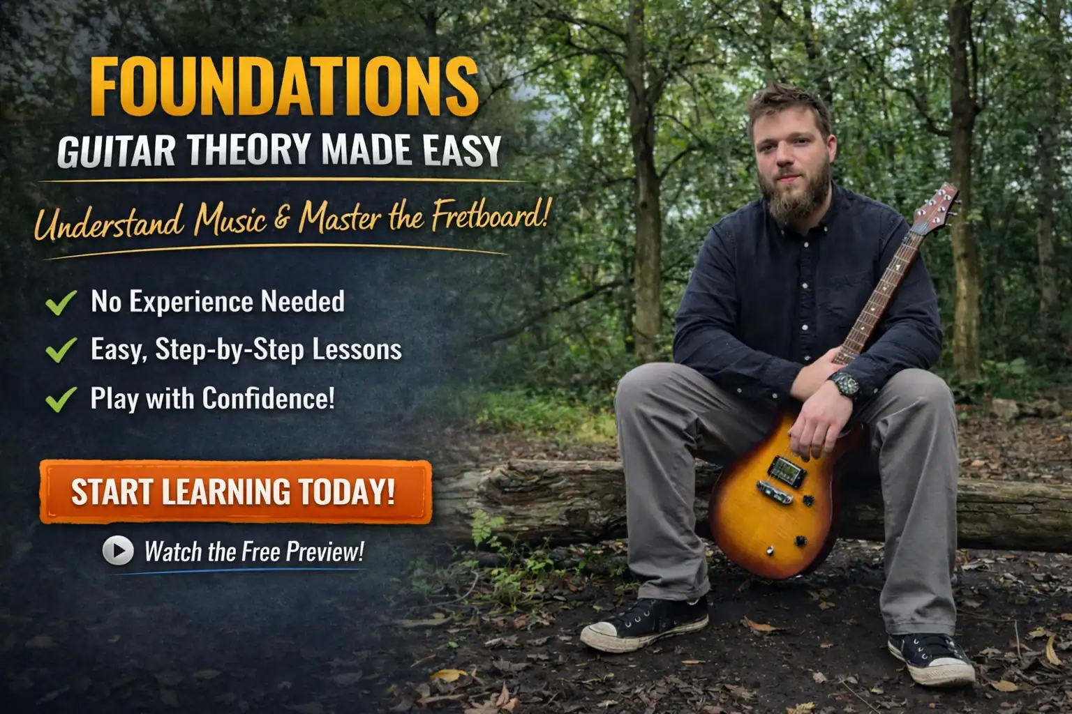 Foundations is a beginner-friendly guitar theory course designed specifically for beginner guitarists who want to understand what they’re playing — not just memorise shapes and tabs.